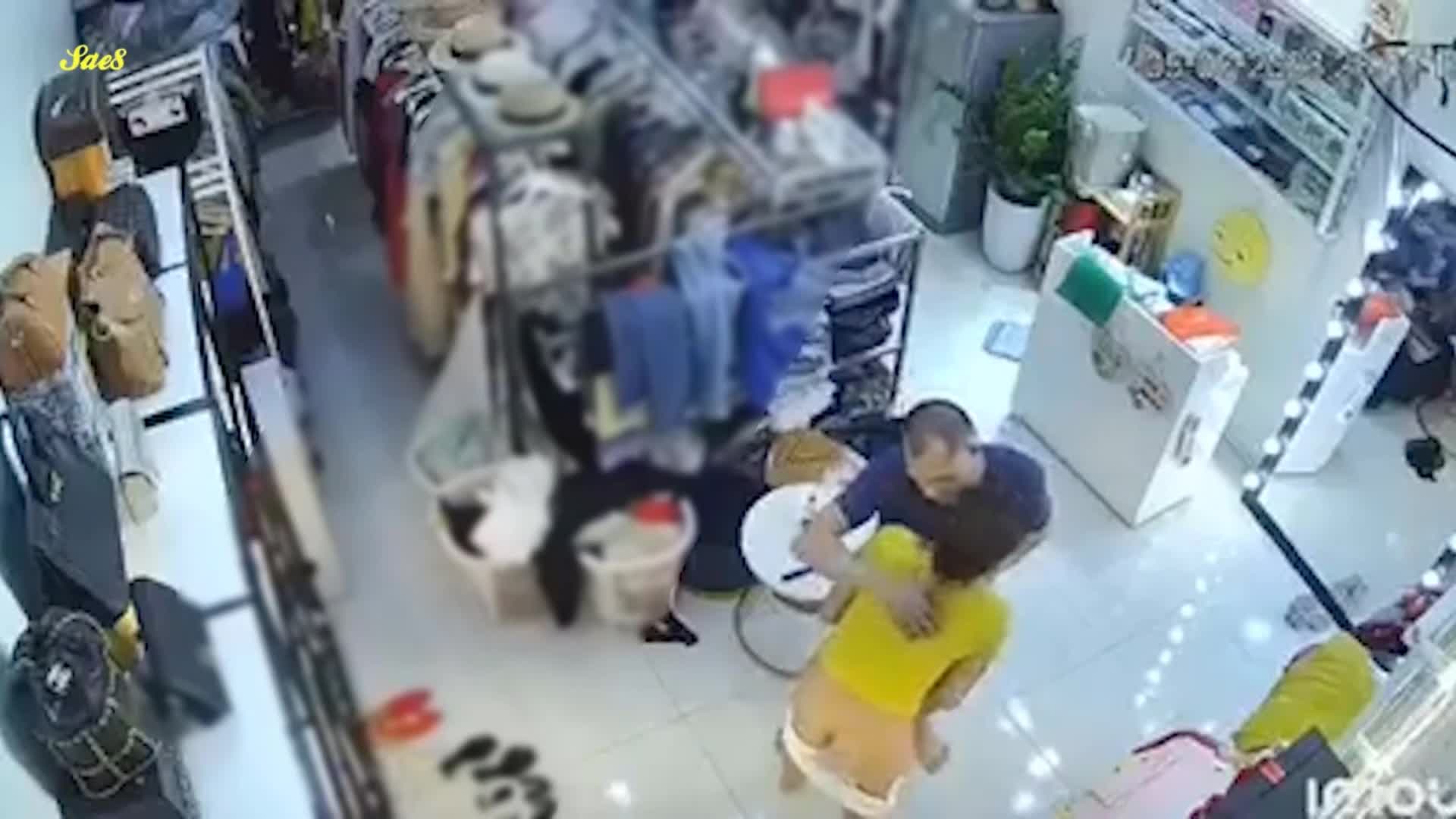 热点大瓜原版影像监控摄像头真实记录服装店美艳老板娘遭遇持刀歹徒劫色教科书式自救